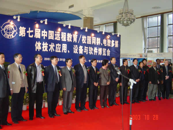 由中央电化教育馆、教育部基础教育课程教材发展中心、中国国际企业合作公司联合主办,中企国际展览广告有限公司与中央电化教育馆网络建设部承办,中央广播电视大学、中国教育电视台、中国电子学会、中国音像学会、中国电子教育学会、中国教育软件行业协会出版专业委员会、高等教育出版社、人民教育出版社、电子工业出版社等机构支持的“第七届中国国际远程教育/校园网群、电教多媒体技术应用、设备与软件博览会”于2003年10月28日至30日在北京。中国人民革命军事博物馆举行。