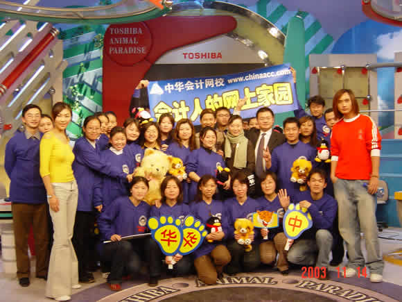 为了向广大学员及社会各届宣传保护大自然、保护野生动物的重要意义,支持社会公益事业的发展,充分展现、发扬网校创新进取、团队协作精神,2003年11月14日,正保会计网校参加了北京电视台的王牌娱乐栏目《东芝动物乐园》的录制活动,该期节目已于2003年12月21日在北京电视台卫星频道(北京1台)播出。同时,上海、南京、成都、沈阳、大连等地方电视台也将陆续播出。