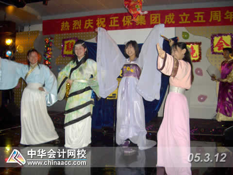 网站开发部一向是公司最活跃的部门,他们的搞笑因子最丰富,去年凭借《雷峰塔》摘取了年会节目的第一名,至今仍为大家津津乐道。2005年原班创作人马再度携手,一部《百花楼》将各种不相干的元素溶合在一起:古典服装配以现代舞步,唱念作打一应俱全,学习卡、梦想成真、会计网校穿插其中,看得大家笑声不断,以绝对的优势摘得了今年小品类节目的桂冠,实现了“二连冠”,至于明年他们的表现如何?就让我们拭目以待吧!