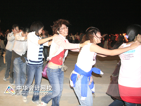 草原的篝火晚会一向是每次活动的重头戏之一,所以第二天晚上,大家在“奋斗”完晚饭以后,就忙不迭地跑到了篝火边。红艳艳的火光下,大家载歌载舞,尽情狂欢,认识的,不认识的;熟悉的,不熟悉的,全都围成一圈,随着音乐的节拍疯狂地舞蹈、摇摆和欢笑。没有了城市的沉闷与寂寞,忘却了生活的烦恼和压力,只有此时此刻的尽情与尽兴。不断高涨的热情和欢乐溢出了舞台,映红了夜空,有人点燃了烟花,夜空的繁星顿然失色,令草原的夜晚更有生气,更加迷人!
