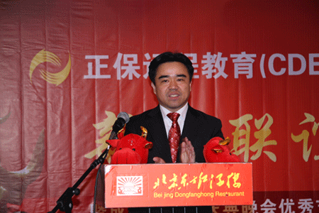晚宴开始之前,正保远程教育董事长、总裁、CEO、校长朱正东先生进行了激动人心的发言,他说:“2008年对所有正保人来说,是永远难忘的一年,这一年,在金融危机席卷全球之际,我们正保远程教育顺利实现海外上市,凭借超常的实力、顽强的执着、多年的拼搏、强烈的自信,于2008年7月30日成功登录美国纽约证券交易所,我们所有正保人多年的梦想终于成真!公司发展迈上了一个新的台阶,我们取得了非凡的成就,非常的了不起!在2009年,我们全体正保人要继续创新进取、激情拼搏,继续引领中国远程教育的大发展,让中国的远程教育深入人心,让正保远程教育家喻户晓!”