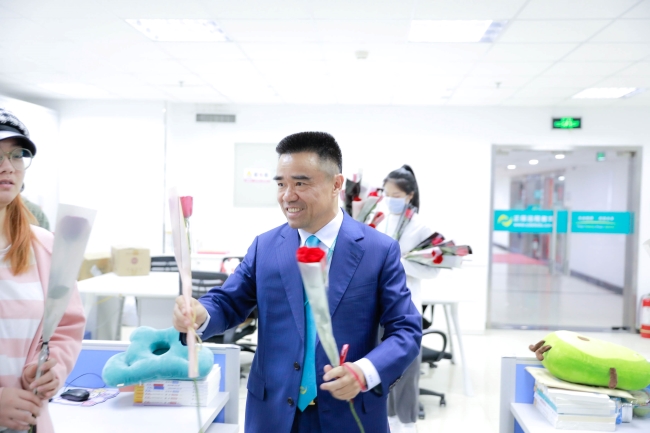 这一天,女孩子们收到了来自董事长、CEO朱正东送上的娇艳玫瑰,这项“女神节”的仪式持续了二十二年,从未缺席,炫丽的花朵将办公室装点得格外美丽。