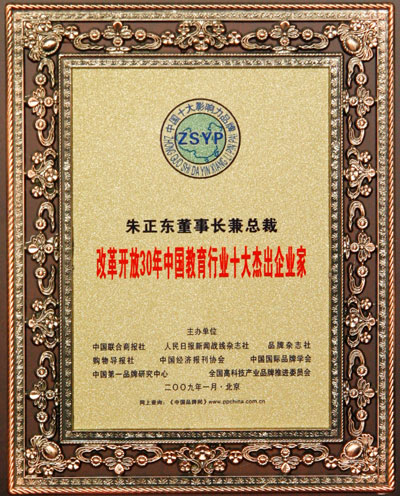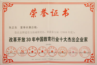 朱正东先生当选“改革开放30年中国教育行业十大杰出企业家”